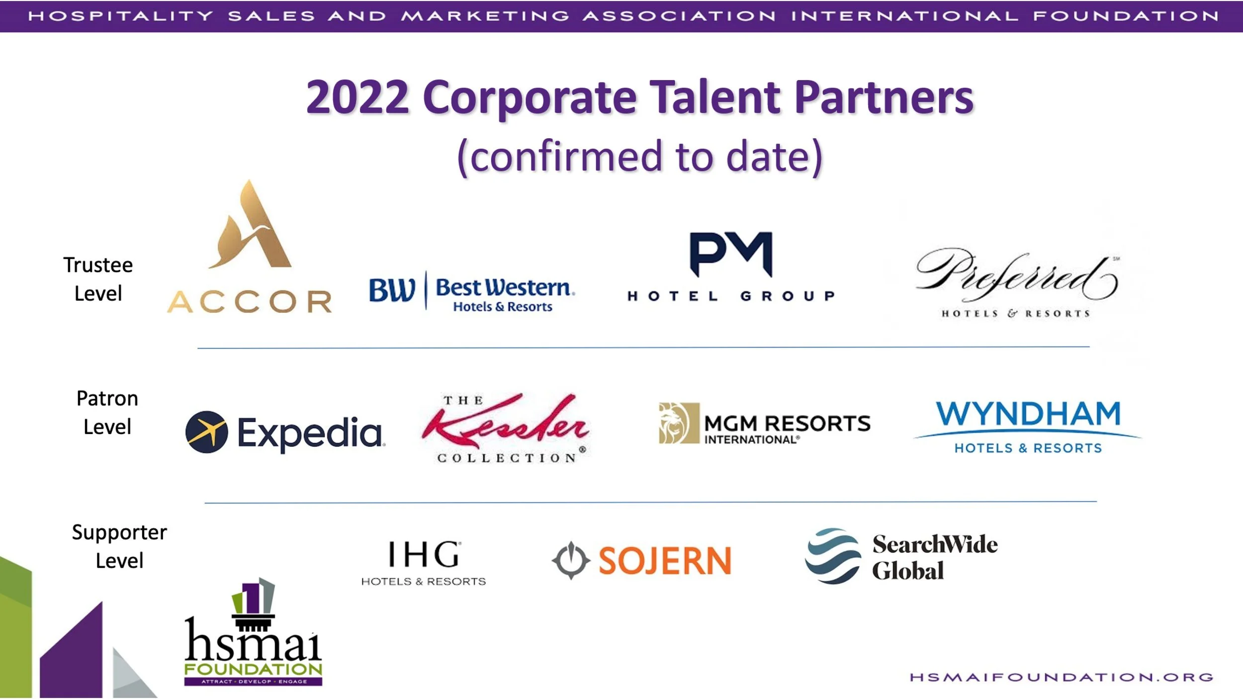 In 2022, the HSMAI Foundation made huge strides on initiatives that will attract, develop, and engage talent. One highlight was producing our first annual “State of Talent” report, capturing the trends in the industry and offering recommended actions and resources. In addition, thanks to the funding from our 11 Corporate Talent Partners, the Foundation had the resources to: